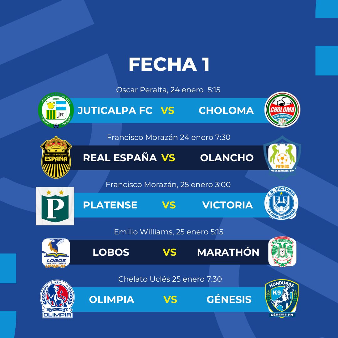 Fecha 1 Torneo Clausura 2026 HondurasLa Jornada 1 de la Liga Nacional abre el torneo con cinco duelos cargados de antecedentes, rachas activas.