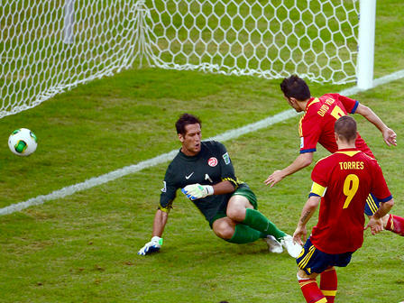 Spain’s forward David Villa (C) scores past Tahiti’s goalkeeper Mikael Roche (L) during their FIFA Confederations Cup Brazil 2013 Group B football match, at the Maracana Stadium in Rio de Janeiro on June 20, 2013. AFP PHOTO / CHRISTOPHE SIMON Navegación de entradas España impone nuevo récord en torneos FIFA