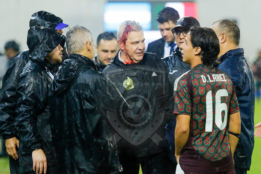 Tras la finalización del partido disputado en el estadio Francisco Morazán de San Pedro Sula, un aficionado lanzó una botella que golpeó la cabeza de Aguirre, quien se acercaba a despedirse del técnico de Honduras Reinaldo Rueda. El golpe ocasionó un sangrado en la cabeza del técnico mexicano.