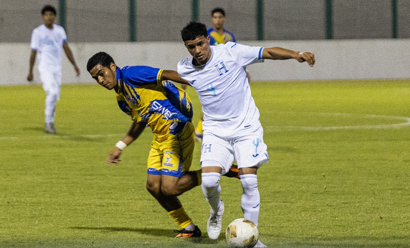 Kevin Funes de la Sub-20 de Honduras en acción contra Lobos UPNFM el 26 de marzo, 2026.