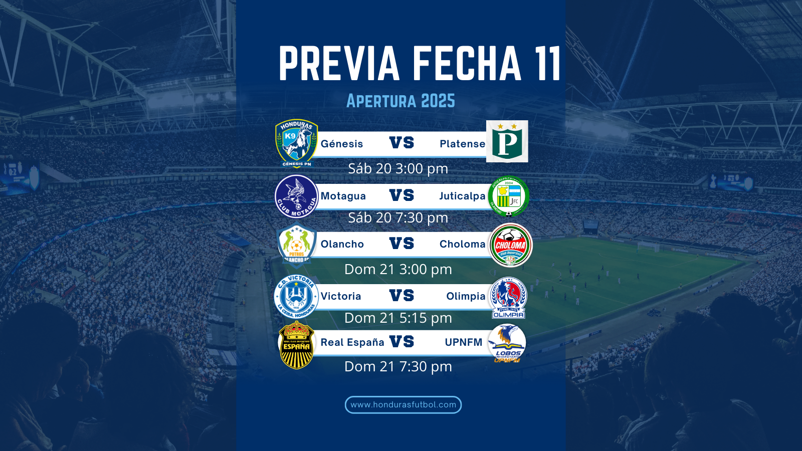 La Fecha 11 del Apertura se jugará el 20 y 21 de septiembre, 2025.